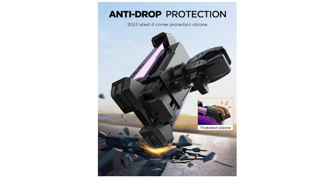FULL PROTECTION: The JOYROOM motorcycle phone mount/bike phone mount features four corner protection and a non-slip silicone pad design to ensure your smartphone is securely fastened while riding, preventing it from slipping or sliding out of this phone holder for bike and phone holder for motorcycle. The powerful security lock ensures your phone stays securely locked in place at all times, with no risk of it coming loose or falling out.
