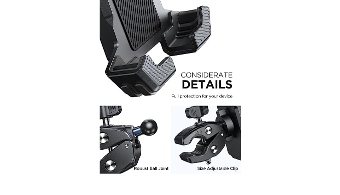 FREELY ROTATING: JOYROOM phone mount for motorcycle features a flexible ball joint that allows you to easily adjust the angle of your smartphone for the best viewing experience while riding. The design also ensures that your phone\\\'s Face ID or fingerprint unlock function remains available without any obstructions.