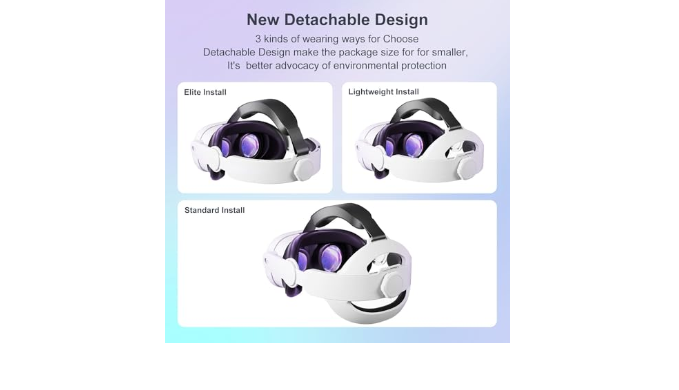 【Easy to Install and Detachable】3 kinds of wearing ways for Choose,Detachable Design make the package size for for smaller, It\'s better advocacy of environmental protection. Simply slide the sides strap into the Quest 3/Quest 3S, put the silicone glove on the handle(please pay attention to distinguish the corresponding labels \"L\" and \"R\" on the left and right), and installation is complete. Lightweight and Portabl VR accessories for oculus Quest 3/Quest 3S weighs only 6.9 oz, and start enjoying a comfortable VR journey! Package include 1 x elite headstrap, 1 x user manual.