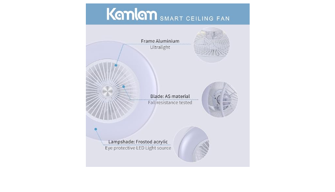 【Upgrade Safe Enclosed Ceiling Fan】KAMLAM 24 inch bladeless ceiling fan with light adding the stylish sense of space,extra large lampshade, hidden blade design, no exposed blades, more secure than traditional fan lights. Better for loft beds and low ceilings. Perfect for low-profile small rooms, like bedrooms, living rooms, kitchens, et