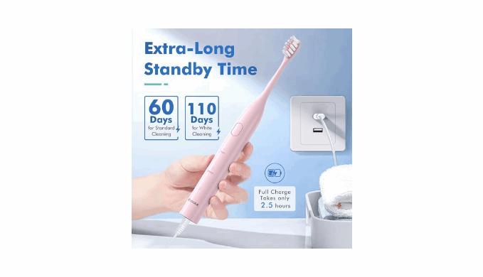 Long-Lasting Battery Life: With a single 4-hour charge, enjoy up to 60 days of regular use (2 minutes, twice a day). The toothbrush features a convenient charging indicator light, ensuring you always know when it\\\'s time to recharge.