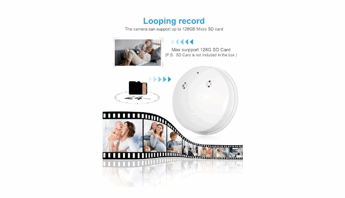 Motion Sensing & Alert Push-After recognizing the motion, the camera will send a push notification with the image to your phone. You can log into the app to see what\'s going on. The camera automatically saves and overwrites the oldest SD card files to continue working when it is full.