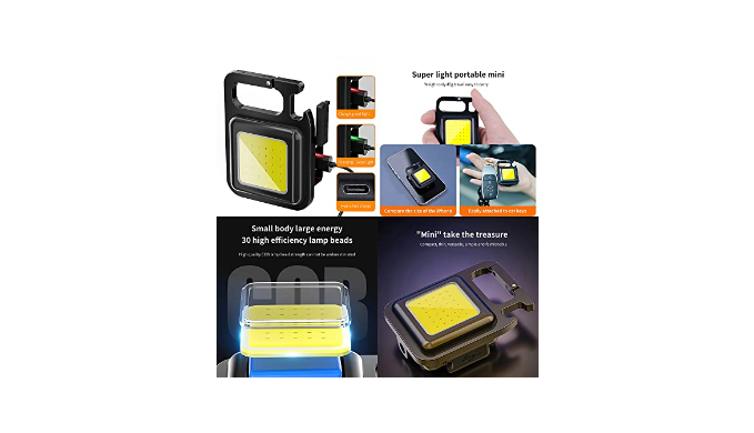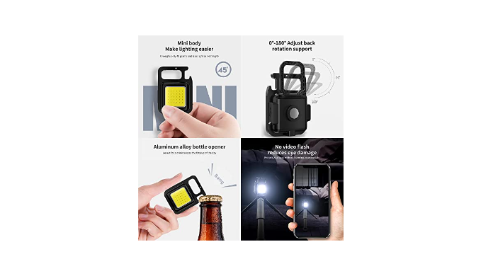 Super High Brightness: This keychain flashlight emits 1000 lumens of bright light with a wide angle beam, thanks to its COB Technical, which also makes the keychain flashlights high lumens useful as a small work light and emergency light.