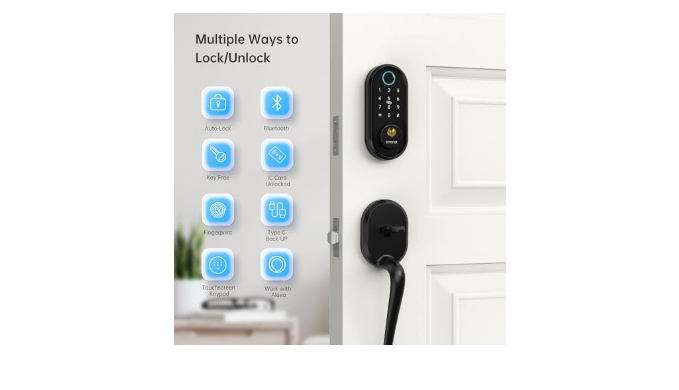 Smart Door Lock: Say goodbye to fumbling for your keys, the SMONET Smart Lock is the solution you need! With the ability to recognize your fingerprint in just half a second and unlock your door in just one, it\'s the fastest option for keyless entry. Plus, you can even connect it to Alexa or Google Assistant for voice control.
