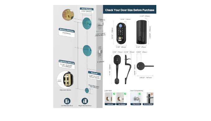 Keyless Entry Door Lock With Handle: Take control of your lock with the Sign in app for smart door locks for front door. With real-time updates, you can see every time your lock is used and any incorrect passcode attempts. Plus, the Code Door Lock offers you the ability to generate custom, permanent, one-time, or timed passcodes for guests, friends, housekeepers, or employees, giving you full control over who has access to your home.