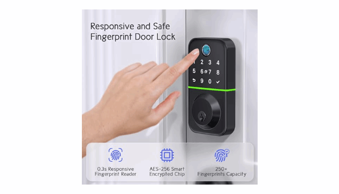 【Auto Lock Function and One-touch Locking】Set auto lock mode in the mobile APP, then the fingerprint door lock will automatically lock after unlocking. No worries about forgetting to lock your digital door lock any more. Or just long press confirm button for three seconds to lock manually on the keypad.
