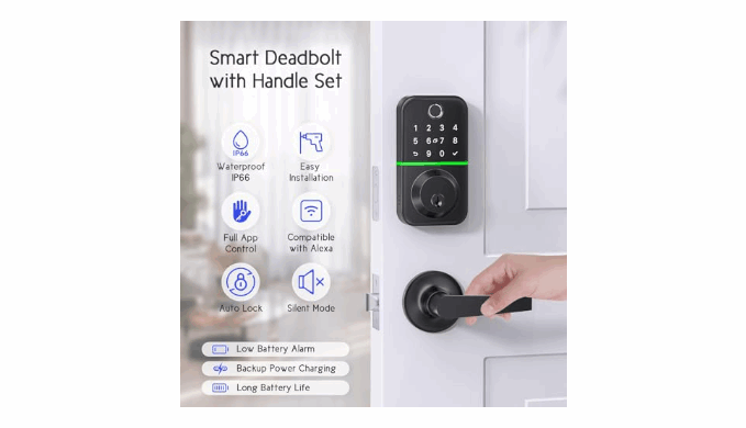 【Weather and Temperature Resistant】The waterproof rating of this smart door locks for front door is IP66. What\\\'s more, the exterior door lock set can withstand extreme temperatures (-22℉ to 158℉). A very excellent choice for your front door.