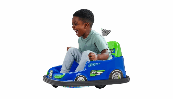Turn playtime into an exciting adventure with the Flybar 6V Blue Bumper Car. Perfect for toddlers and young kids ages 1.5 to 4 years, this battery-powered ride-on features colorful LED lights for extra fun and visibility. Kids can enjoy 360° spins with easy-to-use joysticks, while soft foam bumpers protect walls and furniture during play. The included safety belt keeps riders secure, and the rechargeable 6V battery ensures hours of entertainment. With a gentle 1 mph max speed, it’s a safe and thrilling ride for beginners. Ideal for indoor or outdoor use, the Flybar bumper car delivers smiles, giggles, and unforgettable memories.