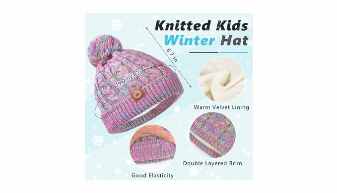 ❄️ Colorful Yarn Design – These children\'s hat scarves and glove sets crafted with ribbed knitting and colorful yarn, this set features a unique rainbow-like style. It comes in one size, with stretchy material that fits most kids. Hat: 6.7 x 6.7 inches; Neck warmer: 8.7 x 5.9 inches; Gloves: 5.9 x 2.8 inches; Socks: 2.8 inches.