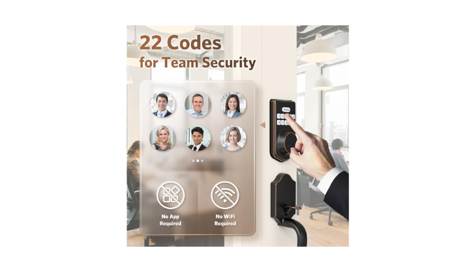 [3 in 1 Keyless Unlock]This extraordinary keypad door lock with handle represents a harmonious blend of modernity and heritage, providing a dual-function keypad lock system that effortlessly combines smart password entry and traditional key usage. It accommodates as many as 22 sets of PIN codes. Allocate distinct PINs to family members, close friends, or temporary visitors, granting them access with maximum ease. No need for Bluetooth or Wi-Fi connectivity.