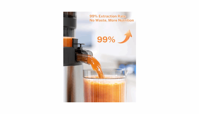 【Quiet DC Motor & Premium Stainless Steel Build】 Juice any time without the noise. The powerful 200W DC motor runs at a quiet 65 dB, making it quieter than a normal conversation. Housed in a sleek, durable stainless steel body, this juicer is built to last and is effortlessly easy to wipe clean.