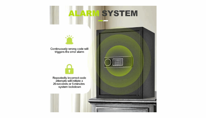 【Smart Anti-Theft Alarm & Silent Mode】Three incorrect code attempts will initiate a 20-seconds system lockdown and emit a short beep every second until the time up. If entered incorrectly 6 times, lock for 5 minutes, even if the power is cut off. Which effectively deters unauthorized access. If you want to open the safe silently, you can follow the manual to activate Silent Mode.