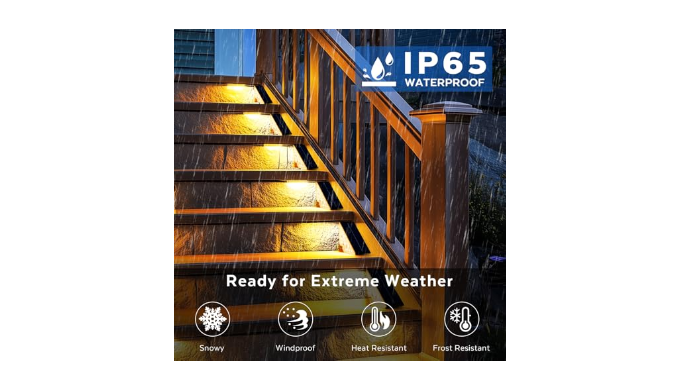 【IP65 Waterproof 】:Made of high-quality ABS+PC materials and featuring an integrated sealed waterproof design, it enables this stair lights outdoor solar power to withstand various weather conditions containing rainstorm, snow and frost.