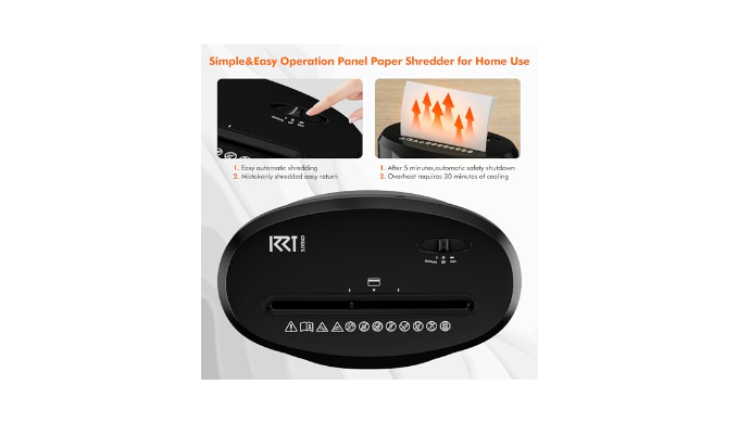Anti-Paper Jam&Fast Shredding Speed:The KRT shredder features durable hard steel blades and a high-performance motor, achieving a shredding speed of up to 2.3m/min. With the capacity to shred 232 sheets of A4 paper continuously in just 3 minutes, it significantly enhances work efficiency for home offices. Designed to minimize paper jams, this shredder ensures a seamless user experience.