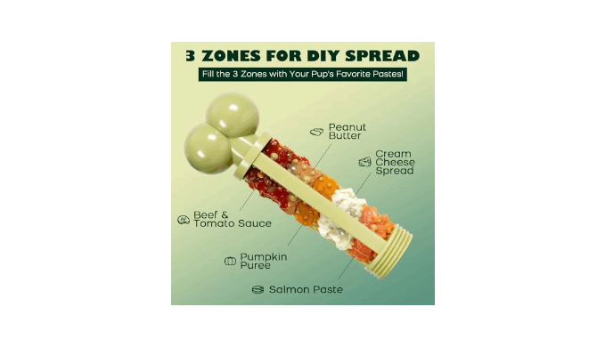3 Zones for DIY Spread: With three sauce-friendly zones, this chew toy lets you serve up all their favorite flavors—tomato beef, peanut butter, salmon, cheese, pumpkin sauce, and more—for a chew that\'s as tasty as it is fun.
