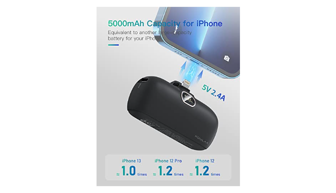 Capacity -- With a battery capacity of 5000mAh, this portable apple phone portable charger has the power to charge an iPhone once and provide 6 charges for air pods, mini but powerful, airplane approved, a must-have travels essential.