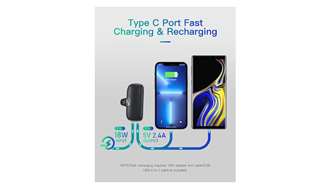 Fast Charging & Recharging -- With a maximum output of 12W, it takes only 30 minutes to charge iPhone 13 from 20% to 60%. and this USB-C power bank supports QC 2.0/3.0, FCP, AFC and other fast charging protocols. it takes only 1.5 hours to fully charge this portable charger power bank with a 9V-2A charger.