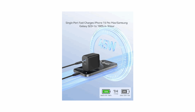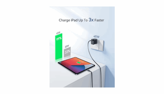 Safe and Reliable - This GaN 45w charger adopting intelligent power allocation to safely charge your devices. Multiple-functional protections protect your devices from over-current, over-voltage, over-heating, and short-circuiting.