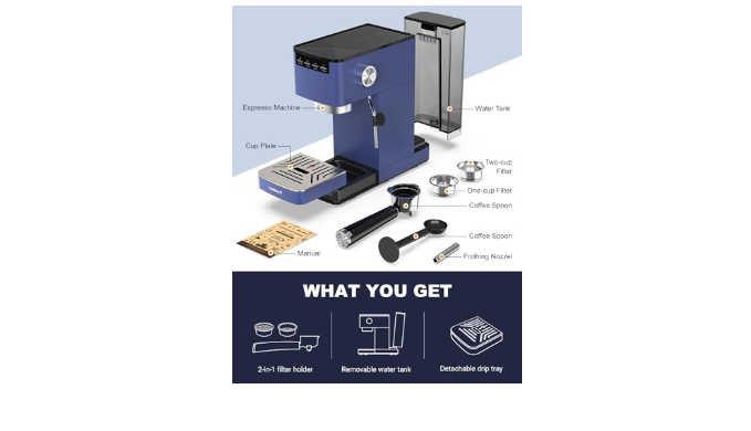 ☕【DUAL-PURPOSE STEAM WAND DESIGN】 The detachable steam wand sleeve design makes it easier for beginners to create froth using the steam wand sleeve. For baristas, removing the steam wand sleeve and employing a rotating technique results in finer milk froth. The optimized 20 Bar pressure and temperature settings provide consistent results every time.