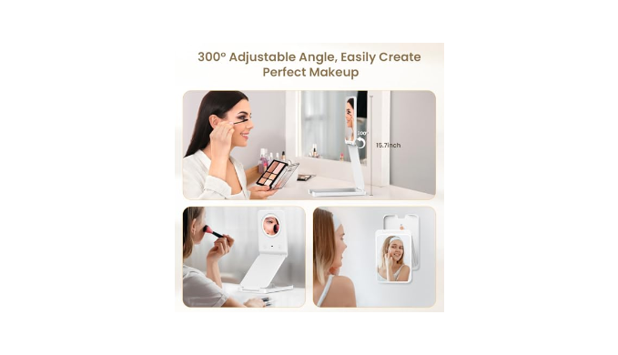 【 Freely Adjust Height and Angle 】-LAMPICK travel makeup mirror can be fixed at any angel or height according to your makeup needs, and the lightweight and compact folding design will make you fall in love with it during travel.The overall size is 8.03\"*5.3\", and the folded thickness is 0.78\". The travel mirror comes with a plush dust bag so you can easily put it in your handbag or luggage, making it perfect for go out or travel