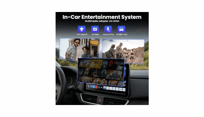 【 Entertainment Upgrade】The Car TV Mate transforms your car into a family travel entertainment hub — simply connect a Fire TV Stick or Switch to watch videos and play popular games through mainstream video apps, so the whole family can share the fun (Note: The Car TV Mate does not include built-in audio or video apps).