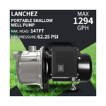 【Strong and Reliable Performance】The UL certificated shallow well pump with 1 HP powerful motor of copper coils, which is more stable, durable and quiet than aluminum coil on the market, ensures strong performance in a low energy consumption, can offer maximum flow rate up to 1294 GPH and max lift water up to 147 feet