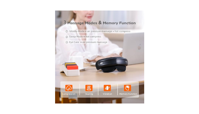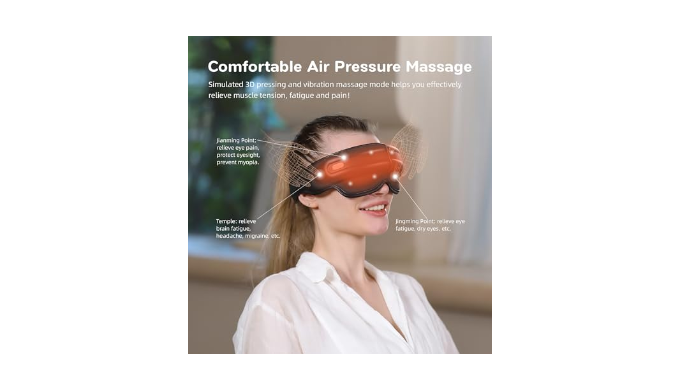 【New Upgraded 3-in-1 Eye Massager】This heated eye massager adopts oscillating pressure and rhythmic percussion massage technology to provide you with a comprehensive 8D real massage-like eye care and massage relaxation experience, this eye care instrument can fully knead the key acupoints around the temples and eyes, allowing you to relax your body and mind during the massage, promote blood circulation, and help you relieve symptoms such as eye fatigue, dry eyes, migraine, insomnia, etc.
