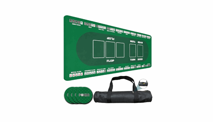 WELL-DESIGNED ZIPPER STORAGE BAG the casino poker mat comes with its own carrying bag, weatherproofing inside, horizontal zipper and an adjustable carrying strap, it makes transporting and storing the poker table top a breeze. The bag keeps the table topper safe from dust and scratches when not in use, ensuring it stays in top condition for every game night