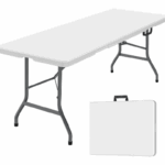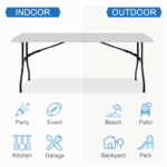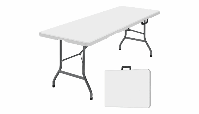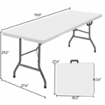 Leumius 6 foot folding table are perfect for indoor and outdoor use. After folding, it takes up very little space and does not require assembly, which greatly simplifies your life. It is designed to have enough space to accommodate up to 8 people. You can use it as a desk, game table, dining table, picnic table, party table, outdoor folding table, etc. It is very suitable for parties, weddings, homes, offices and other occasions~