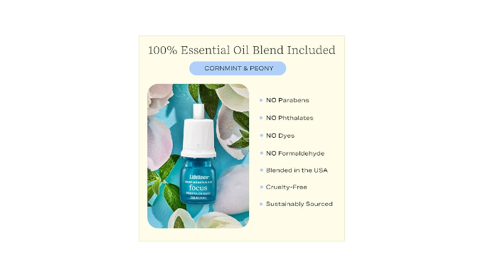 Crisp Mountain Air: Includes a ClickWick Essential Oil Blend in Crisp Mountain Air, featuring hints of cornmint and peony for a beautiful aroma experience.