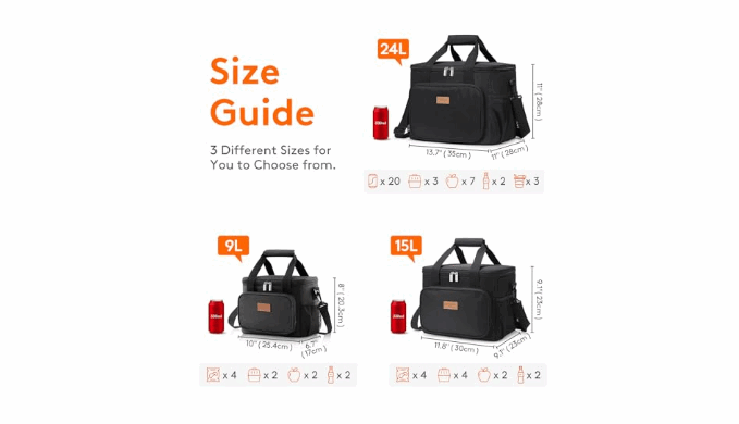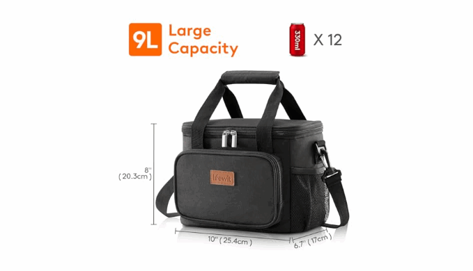 Large Capacity: Dimensions - 10\" ( 25.4cm ) × 6.7\" ( 17cm ) × 8\" ( 20.3cm ). The maximum capacity of lunchbox for adults is 9L, and is spacious enough to store 12 cans of coke (330ml), or your lunch such as sandwiches, salad, snacks, drinks and fruits and so on. It is suitable for office, for work, picnic, beach, trip.