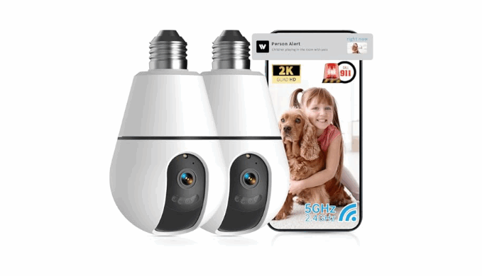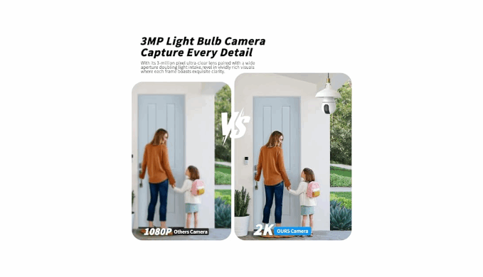 【2K HD Resolution and Color Night Vision】Our wireless security camera outdoor delivers 2K quality video and images, ensuring that you can see clear details day and night. The light bulb camera supports full color night vision and is not affected by darkness. Clearly capture objects within a 3-feet range even in low light conditions.