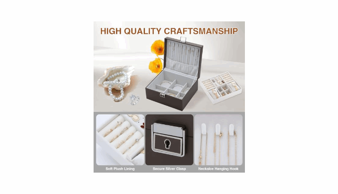 Easily Sorted: We have thoughtfully divided the space of the jewelry case into different sized compartments, which helps to store different types of jewelry, prevent tangling or misalignment. The jewerly box is easy to select jewelry for quick daily OOTD matching. Also, the compartments are adjustable and you can remove the inserts and dividers as needed for flexibility and convenience. There are also small handles on the inside to make it easy to lift the top divider