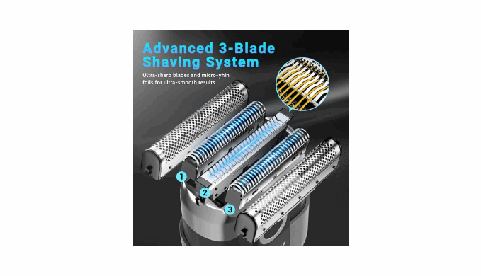 3-Blade Electric Shavers for Men: Engineered with an optimised blade system, LYRSLF mens electric razors for shaving face combines two foil shaving blades with a long beard trimming blade. It effortlessly trims short stubble and longer beards, delivering a smooth, effective shave. The three blade heads and high-speed motor (8,500 RPM) of this mens electric razor ensure fast and precise shaving