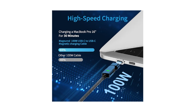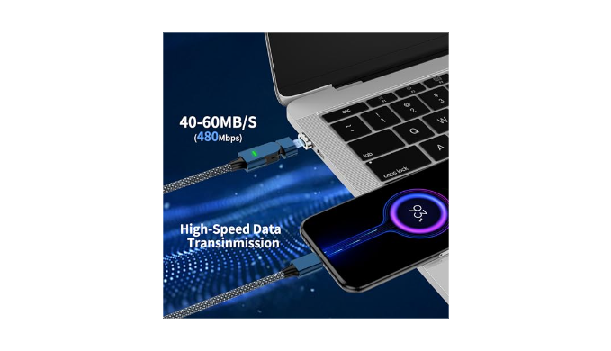 Our charging cable is not just about speed; it\'s also about stability and durability. Utilizing N52 magnets, the cable and tips stay securely connected, reducing the risk of accidental disconnection. The nylon braided material adds an extra layer of durability while remaining flexible and resistant to dirt, ensuring a long-lasting and reliable charging experience. Additionally, the cable supports data transfer speeds of up to 480 Mbps, allowing you to sync files and media between devices seamlessly.