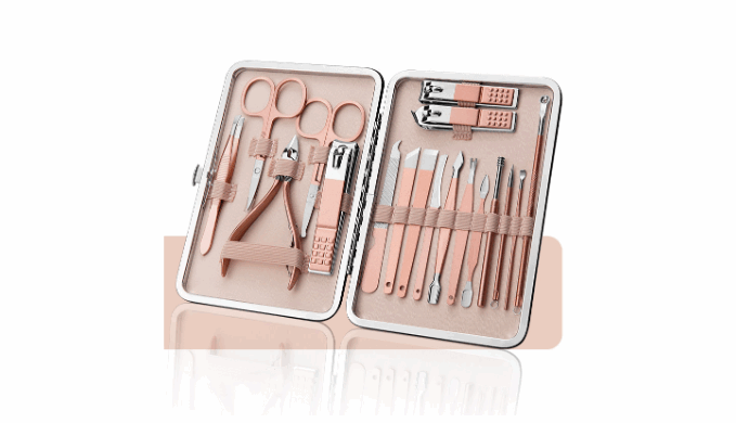 Portable:Manicure set comes with a portable synthetic leather case that is easily opened with a push of a button. It is also very lightweight so you can carry it with you in your bag everyday or pack it with you when you go traveling.