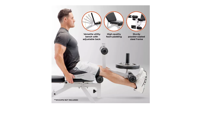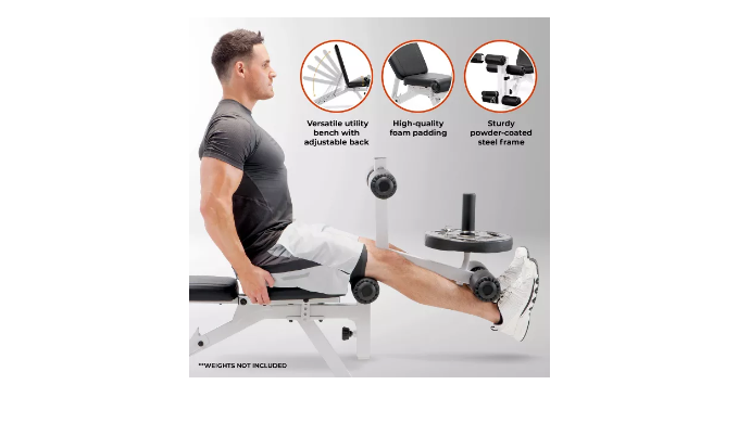 VERSATILE FULL-BODY WORKOUT BENCH: Targets multiple muscle groups, allowing for chest presses, leg extensions, and abdominal exercises in one compact home gym solution