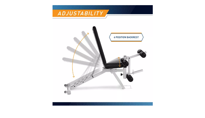 MULTIPLE ADJUSTABLE POSITIONS: Features adjustable backrest and seat positions for flat, incline, and decline setups, providing a variety of exercise options for strength and flexibility training