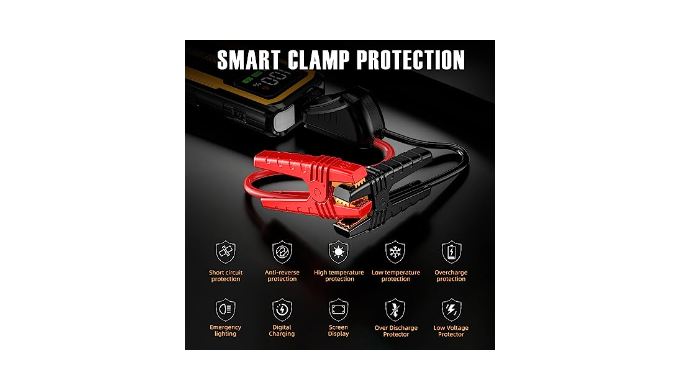 【New Generation Intelligent Smart Clamp Cables 】-The car battery charger jump starter portable with heavy-duty clamps and cables, providing versatile safety protection system.No need to worry about incorrect connections or sparks.even in extreme environments from -20℃ to 55℃.