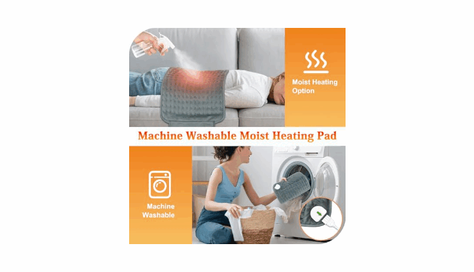 【SKIN-FRIENDLY & MOIST THERAPY】The electric heating pad for cramps is made of double-sided coral velvet fabric with soft texture, which can bring you ultimate comfort. The heating pad for neck and shoulders also supports moist heat therapy, which can effectively relieve fatigue and muscle pain, and make you fully relaxed. In addition, this moist heating pad is machine washable, freeing your hands.