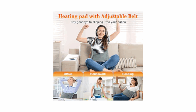 【ADJUSTABLE BELT & FREE HANDS】New upgraded heating pad for back with belt can hold the heating pad tightly and fit your body well. You can free your hands while working, doing housework or reading without worrying about it falling or moving. Adjustable design allows the heating pad for cramps to fit different body types. Our back heating pad is perfect for women, office workers, and exercisers.