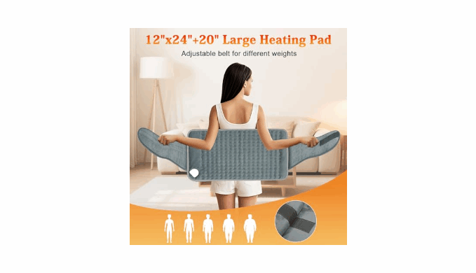 【EFFECTIVE PAIN AND CRAMP RELIEF】The heating pad can quickly warm up in 20 seconds to promote blood circulation. Effectively relieves pain in the lower back, abdomen, shoulders, arms, legs and other body parts. 12\'\'\'x24\'\'+20” large electric heating pad ensures adequate coverage and effective heat distribution. Whether you are at home, in the office, or traveling, this heating pad for lower back is your ideal companion.