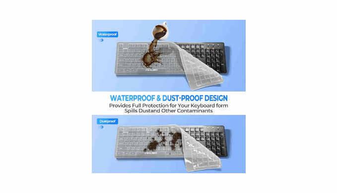 Covered keyboard: This wired keyboard comes with a 0.4mm thick original dust film, which not only prevents splashing and pet shedding, but also prevents dust from entering through gaps. It is suitable for automotive repair, production workshops, warehouse management, printing and other dusty places; Extend the lifespan of the keys and keep the keyboard clean