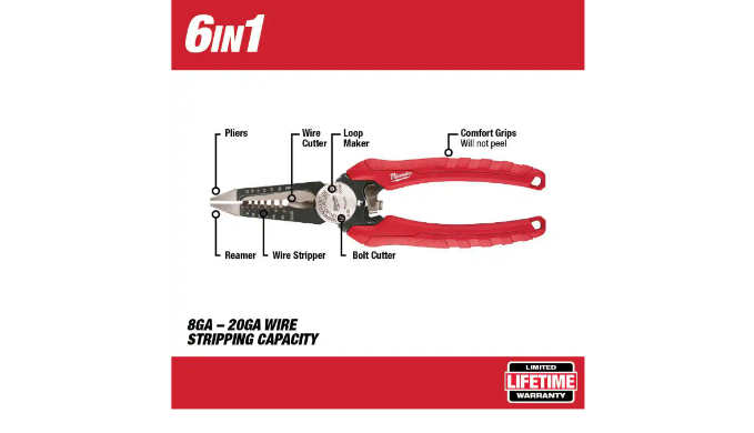 - Includes: one 3-piece pliers kit (48-22-6331), one 7.75 in. combination electricians 6-in-1 wire strippers pliers (48-22-3079), one 6-piece screwdriver set (48-22-2706), one 25 ft. compact auto lock tape measure (48-22-6825), and one 2-piece FASTBACK folding utility knife with blade storage and compact folding utility knife with 2 general purpose blades (48-22-1503)