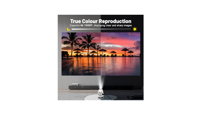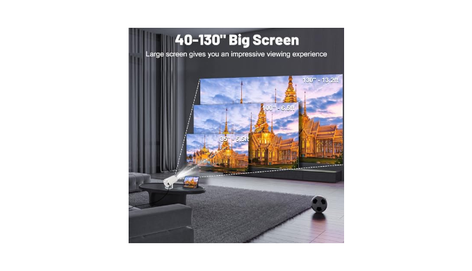 【HD Projection Display】The movie projector supports 4K 1080P and offers 40-130 inch projection screen with an optimal projection distance of 5.51 ft. You can easily get the best projection screen with the automatic horizontal keystone correction function.