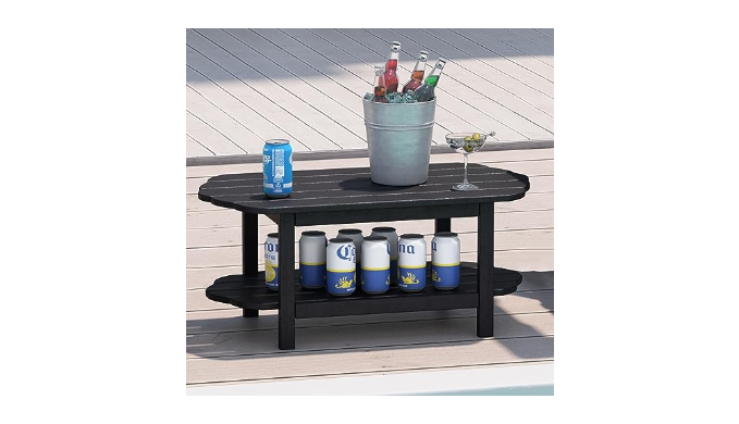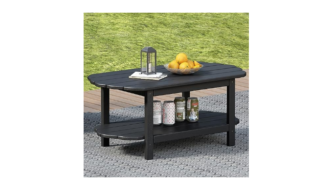 WEATHER RESISTANT: This heavy duty outdoor patio coffee table is made of environmentally friendly materialc High Density Polyethylene (HDPE) material. With a realistic textured wooden look and coated with a protective layer on the surface to prevent warping, cracking and fading, it can withstand all kinds of rain, snow, strong wind, hot sun and other harsh weather.