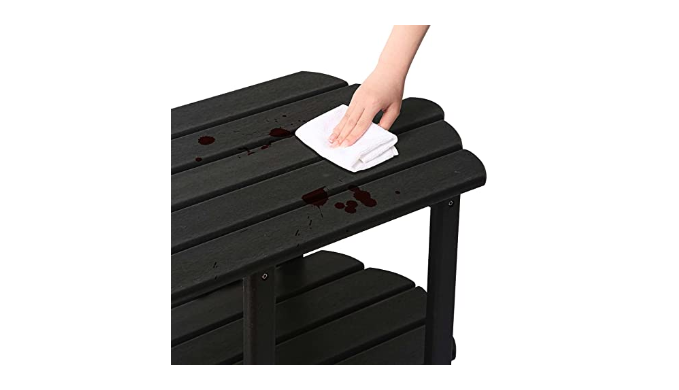 EASY TO ASSEMBLE AND MAINTAIN: The tabletop has been assembled, just use tools to tighten the screws to easily get end table. The plastic outdoor table is super weather-resistant and easy to clean with soap, a towel or a sanding sponge, no other protection is required.