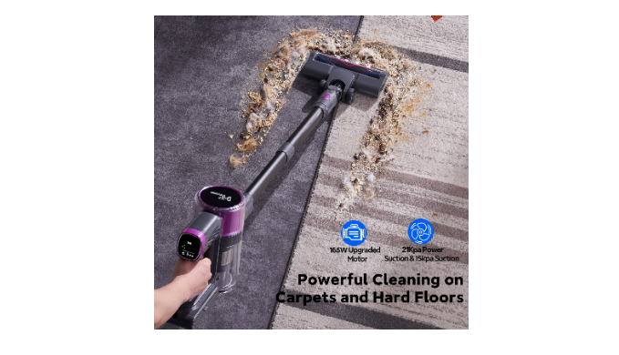- Cutting-Edge Display Screen: Our vacuum cleaner features a state-of-the-art display screen that conveniently showcases real-time battery level and suction mode, allowing you to monitor performance with precision.
