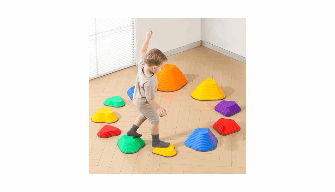Advanced Safety Features: Each stone features a grippy rubber base that prevents slipping on multiple surfaces including hardwood grass and carpet Stable structure supports active jumping and balancing.