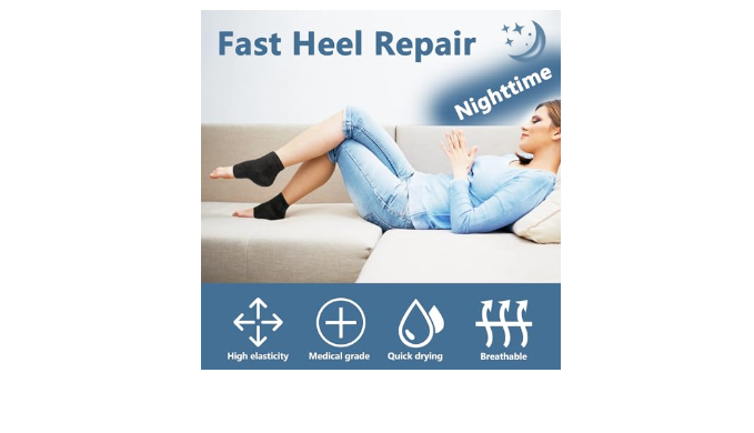 Fast Cracked Heel Repair: Soak your feet, lather on lotion, and wear your socks all night long for the first 7 days. If you plan to wear the socks during the day, just skip the lotion to avoid slippery heels.